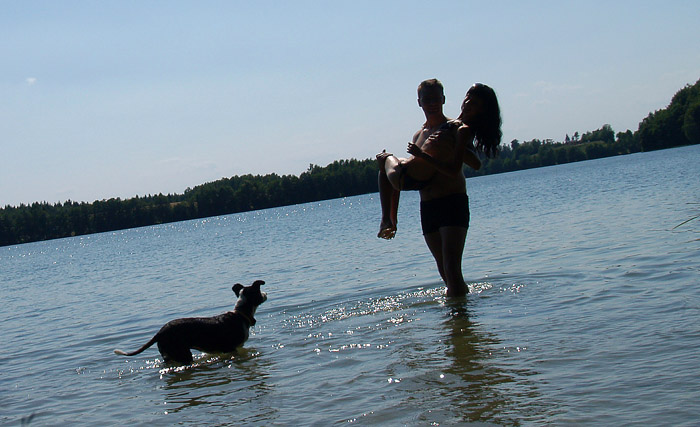 Trening rowerowy i pływanie w jeziorze nie były jedynymi nowościami wakacyjnych pobytów w Grzybnie. W maju 2012 roku przywieźliśmy z Chorwacji małego i bardzo mądrego rozbójnika, a to oznacza, że nasze psie stado powiększyło się do czterech sztuk (jak ja mogłam bez niego wcześniej żyć, no jak?!).