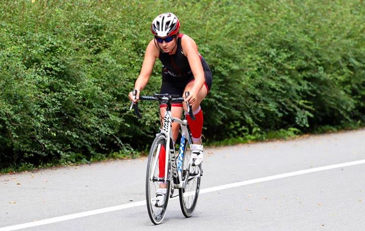 Część rowerowa zasługuje na oddzielny akapit. Przede wszystkim była mordercza, zaliczyłam na niej naprawdę trudne chwile, zwłaszcza w drugiej części dystansu, gdy potwornie bolały mnie plecy. Pierwszy raz jechałam na zawodach z nowymi aero kołami, które – kiedy się je rozpędzi – zasuwają jak sam diabeł. Ponadto nigdy wcześniej nie jechałam w triathlonie z draftingiem i byłam bardzo ciekawa, jak to się rozegra. Pod kątem miejsca na trasie i bezpieczeństwa wszystko było w stu procentach w porządku. Jeśli chodzi o jazdę na kole, to niestety niewiele skorzystałam z tej możliwości. Przez kawał drogi sama prowadziłam spory peleton, znowu nie mogąc się nadziwić, że faceci siadają na kole dziewczynie. Machałam do nich, żeby wychodzili na zmiany, ale bezskutecznie, więc jak zwykle wyszłam na największego frajera zawodów. Zdarzył mi się jeden całkiem sensowny peleton – jeden z zawodników niedaleko zawrotki przed strefą zmian wyszedł na prowadzenie. Za zakrętem zaczął zwalniać, więc wyprzedzając go zaproponowałam mu – i jeszcze jednej osobie – wspólną jazdę po szybkich zmianach. Pojechałam “swoje” 500m na czele, zjechałam na tył grupy i.. tyle ich widziałam. Chłopaki tak pociągnęli, że mogłam im co najwyżej pomachać. Przez resztę okrążenia wypruwałam sobie flaki, żeby ich dogonić, a gdy przed kolejnym nawrotem już prawie ich miałam.. musiałam zwolnić prawie do zera, bo przede mną snuły się dwa rowery trekkingowe. Fail. Jakimś cudem udało mi się dogonić swoją grupę kilka kilometrów dalej.. z tym że grupa zdążyła się w międzyczasie rozpaść. Koniec końców wyprzedziłam prawie wszystkich, a tych których nie zdołałam dogonić, nie zobaczyłam nawet w strefie zmian.