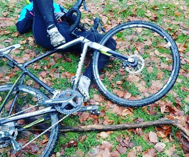 | Niekiedy uczę się też techniki jazdy rowerem przełajowym, a jak to wygląda, widać na załączonym obrazku. |